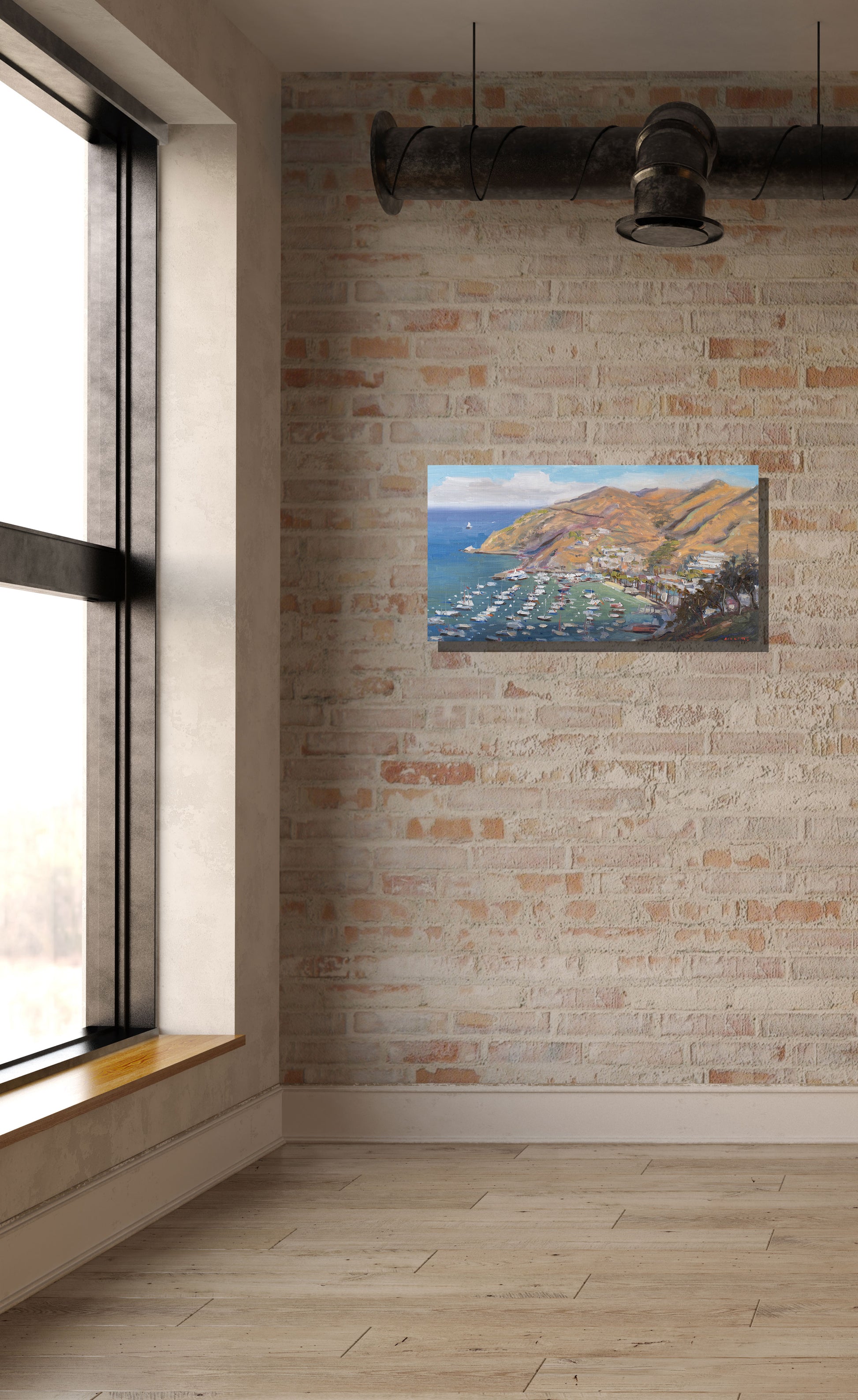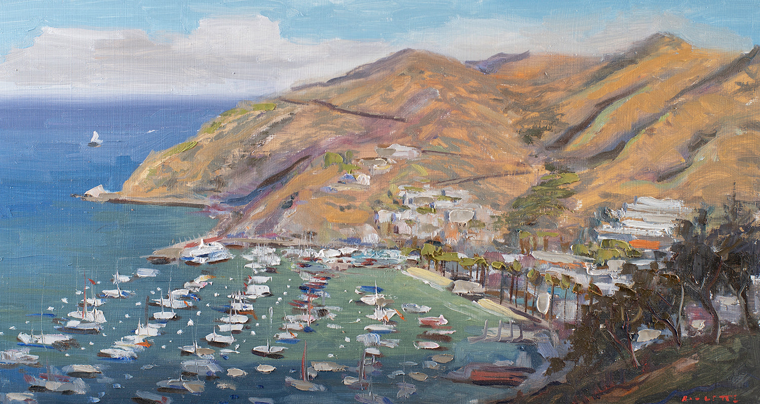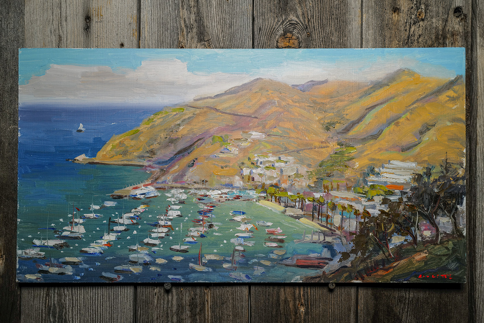 A Plein Air Painting measuring eleven by twenty one inches. Completed in Oil on hardboard was painted in Avalon on Catalina Island in the summer. Price includes free shipping!!