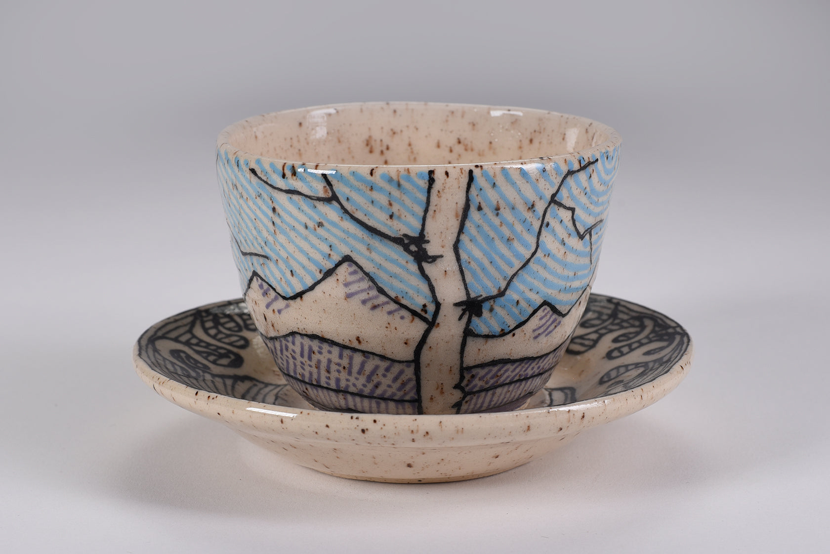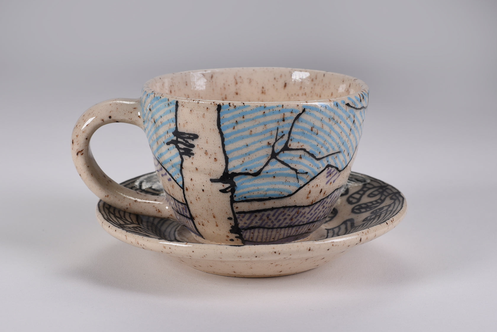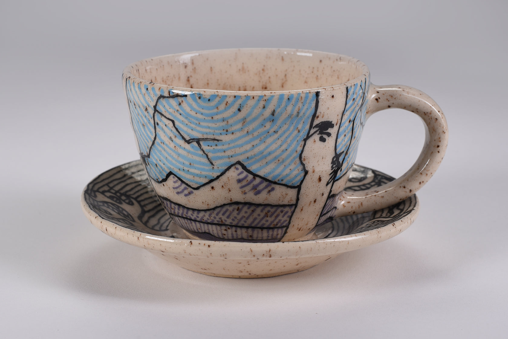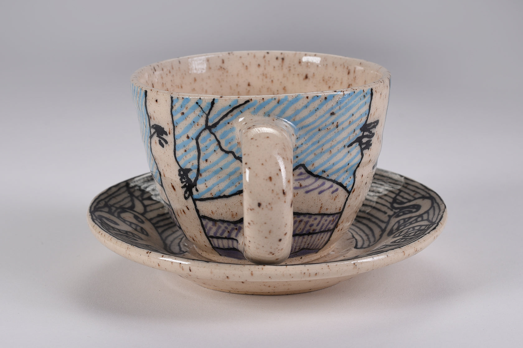 This Cappuccino Set matches the cup with the saucer. Painted with underglaze and a Highly glossy finish. Price includes free shipping.