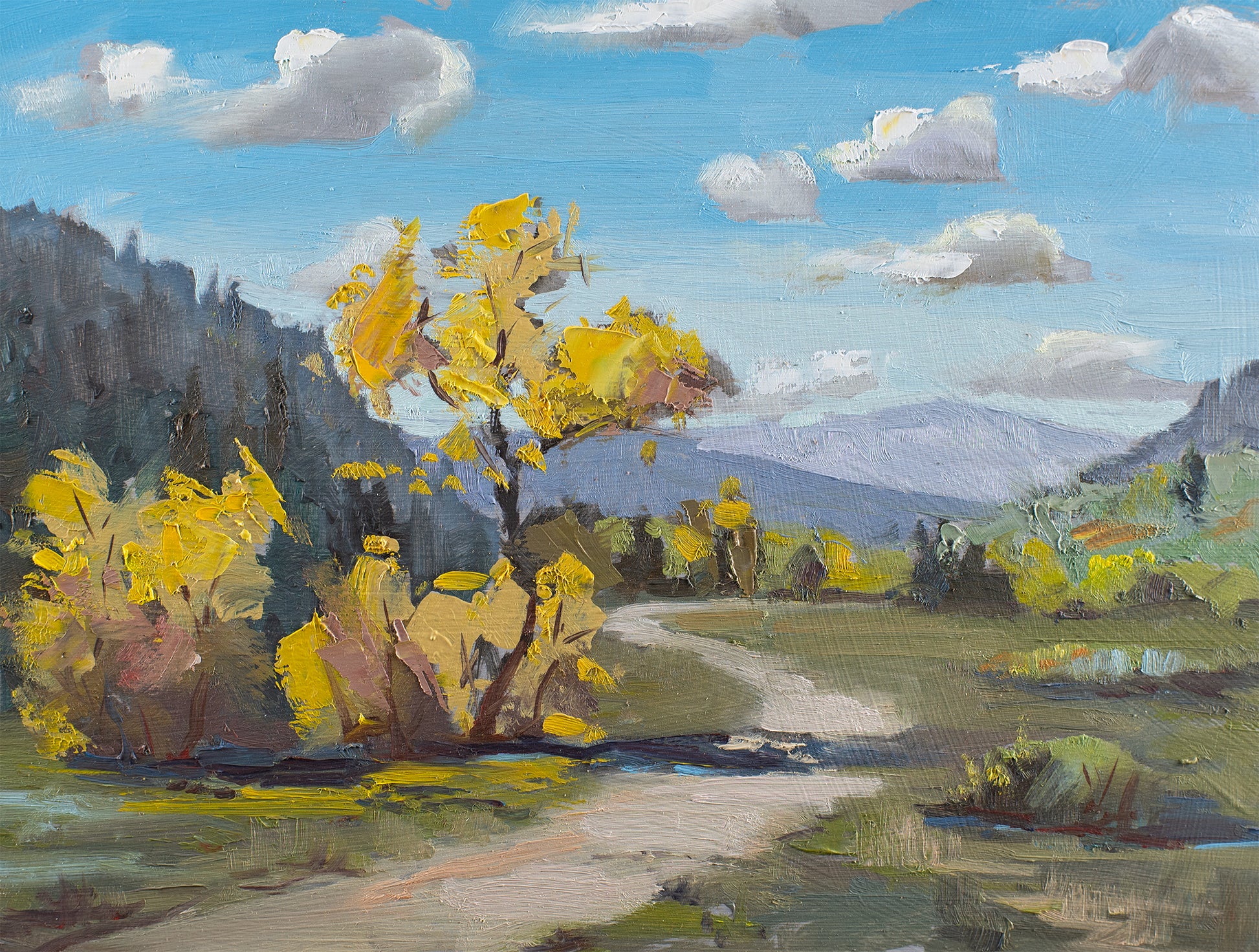 A Plein air painting measuring 9 x 12” done in oil on hardboard. Painted on September 19th 2025. Completed in Northern Colorado in Clark Colorado.