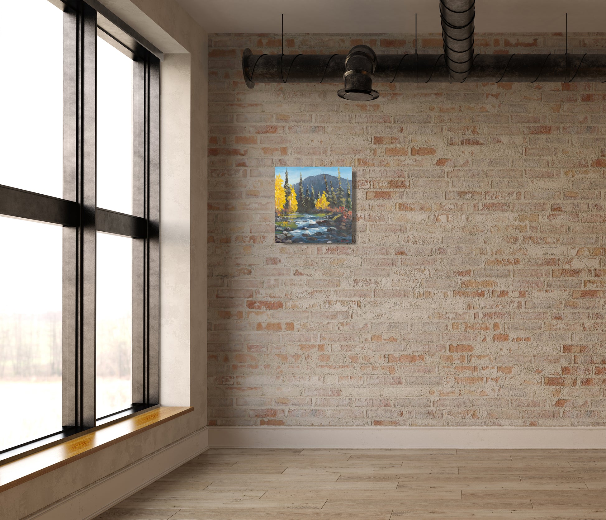 A Plein Air painting measuring 12” x 12”. Painted in oil on hardboard on September 25th 2025. Completed in northwest Colorado near the Town of Clark looking east up the Elk River.