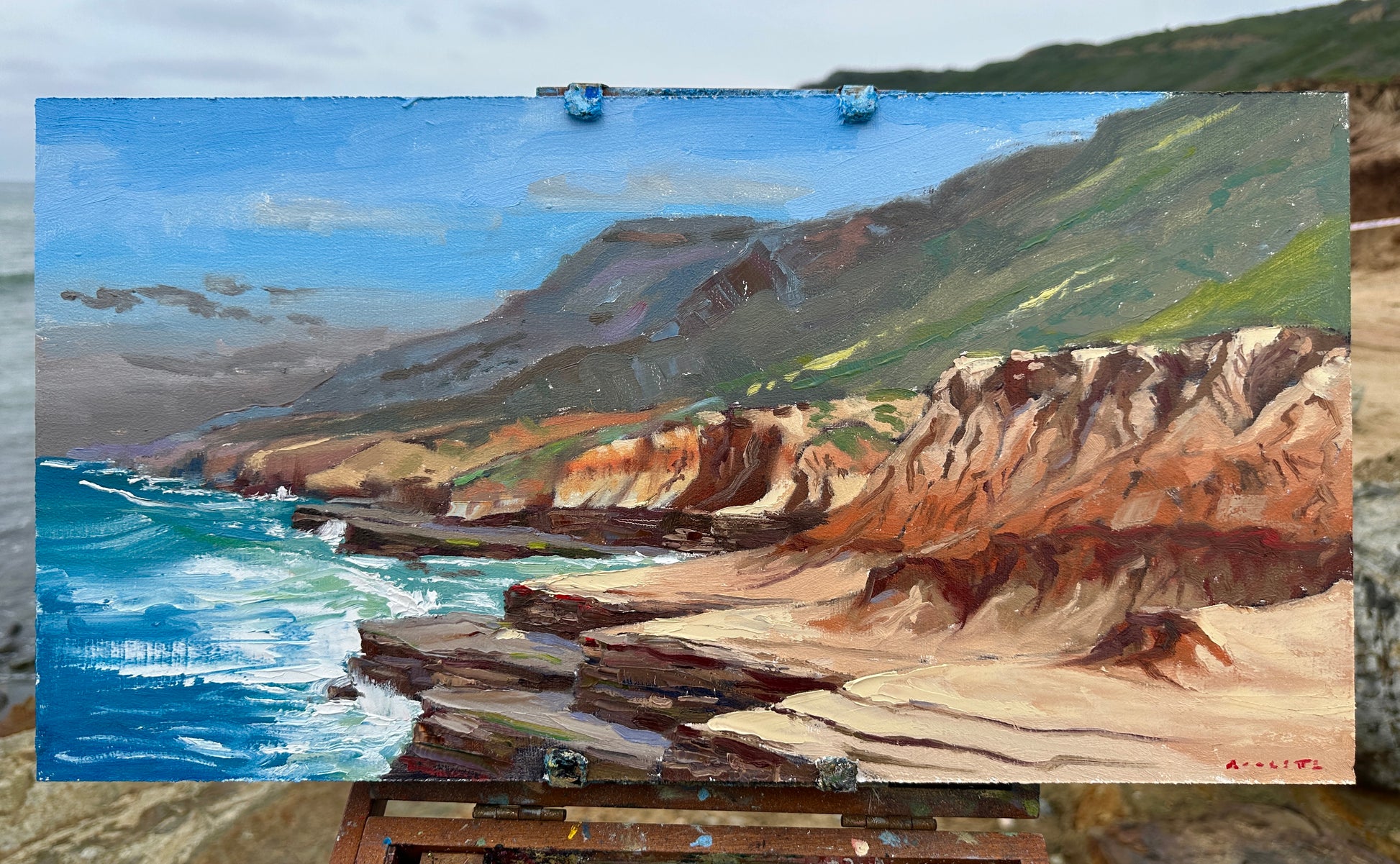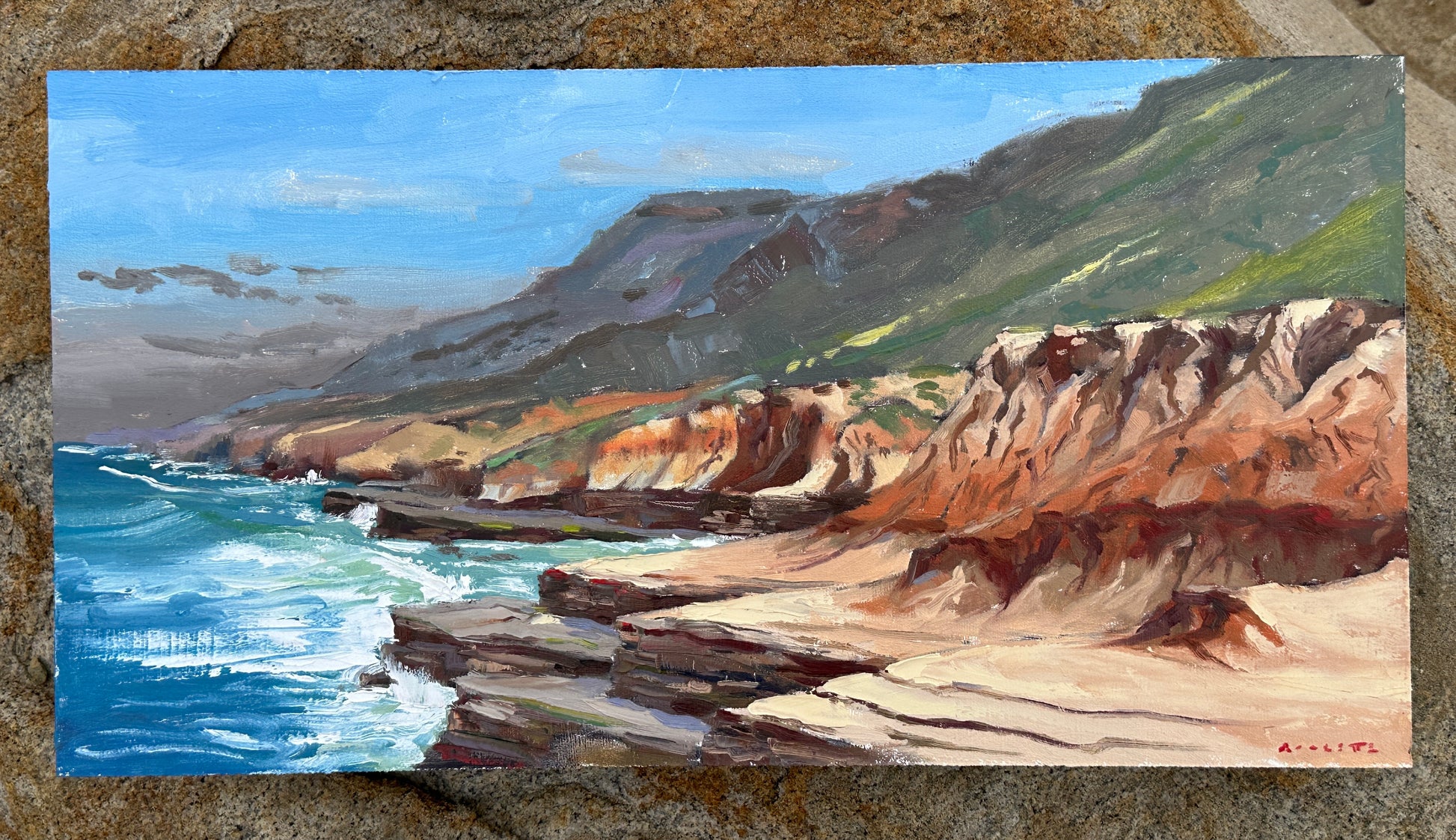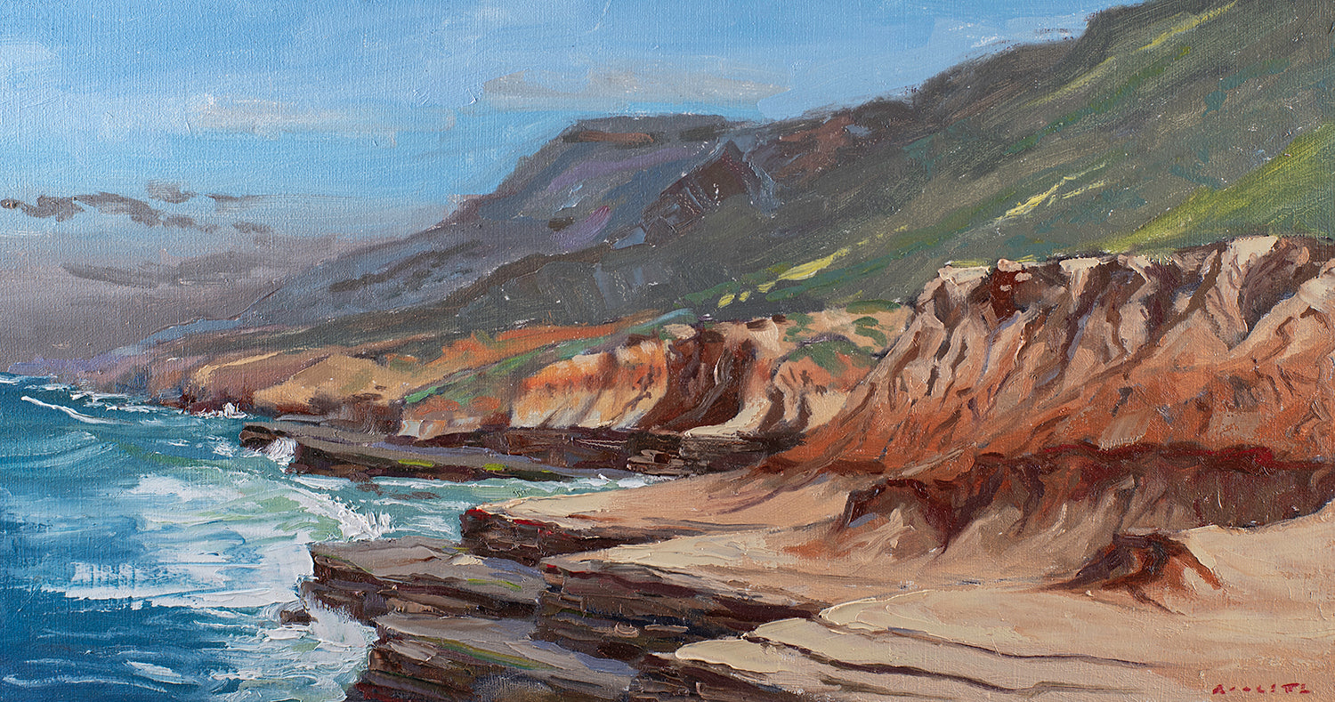 Measuring 11 by 21” this Plein air painting was completed on February 25th at Cabrillo National monument near San Diego California. Painted in oil on hardboard. Price includes Free Shipping!!