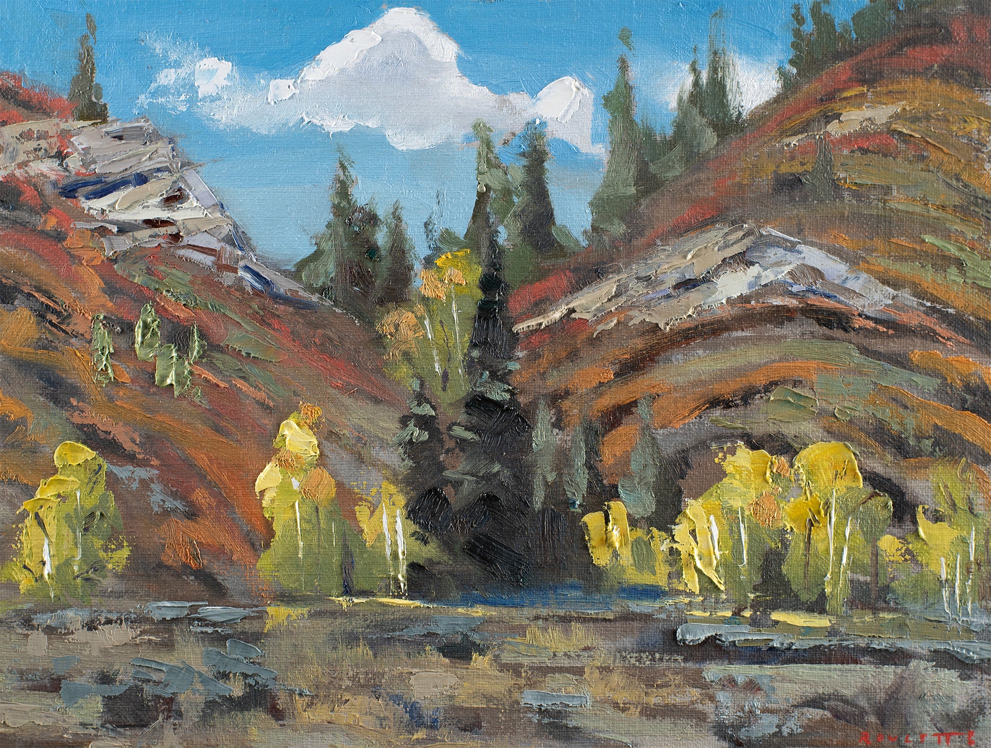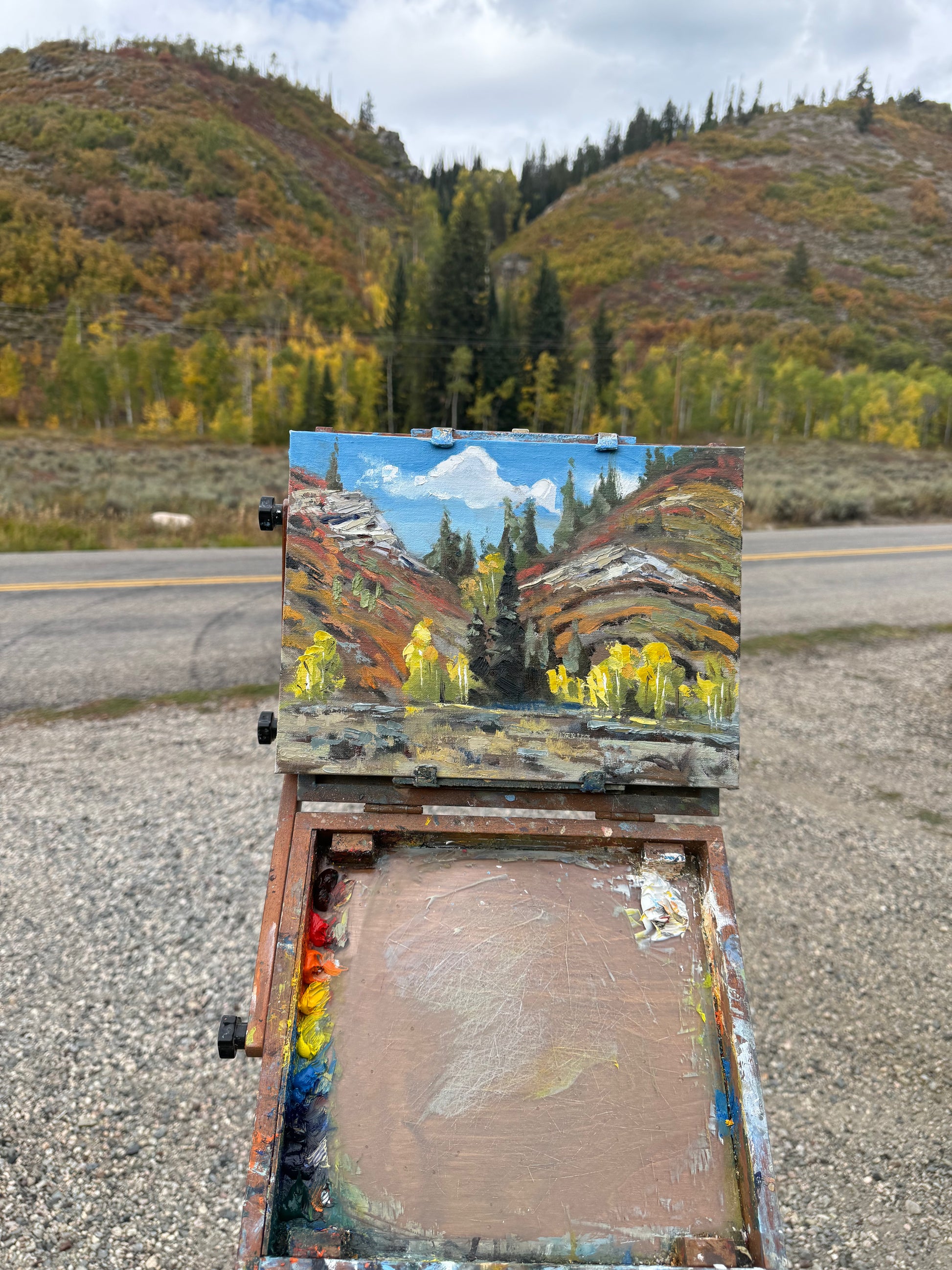 A Plein Air painting measuring 9 x 12”. Completed in oil on hardboard in northern Colorado, near the town of Clark. Painted on September 20th 2025.