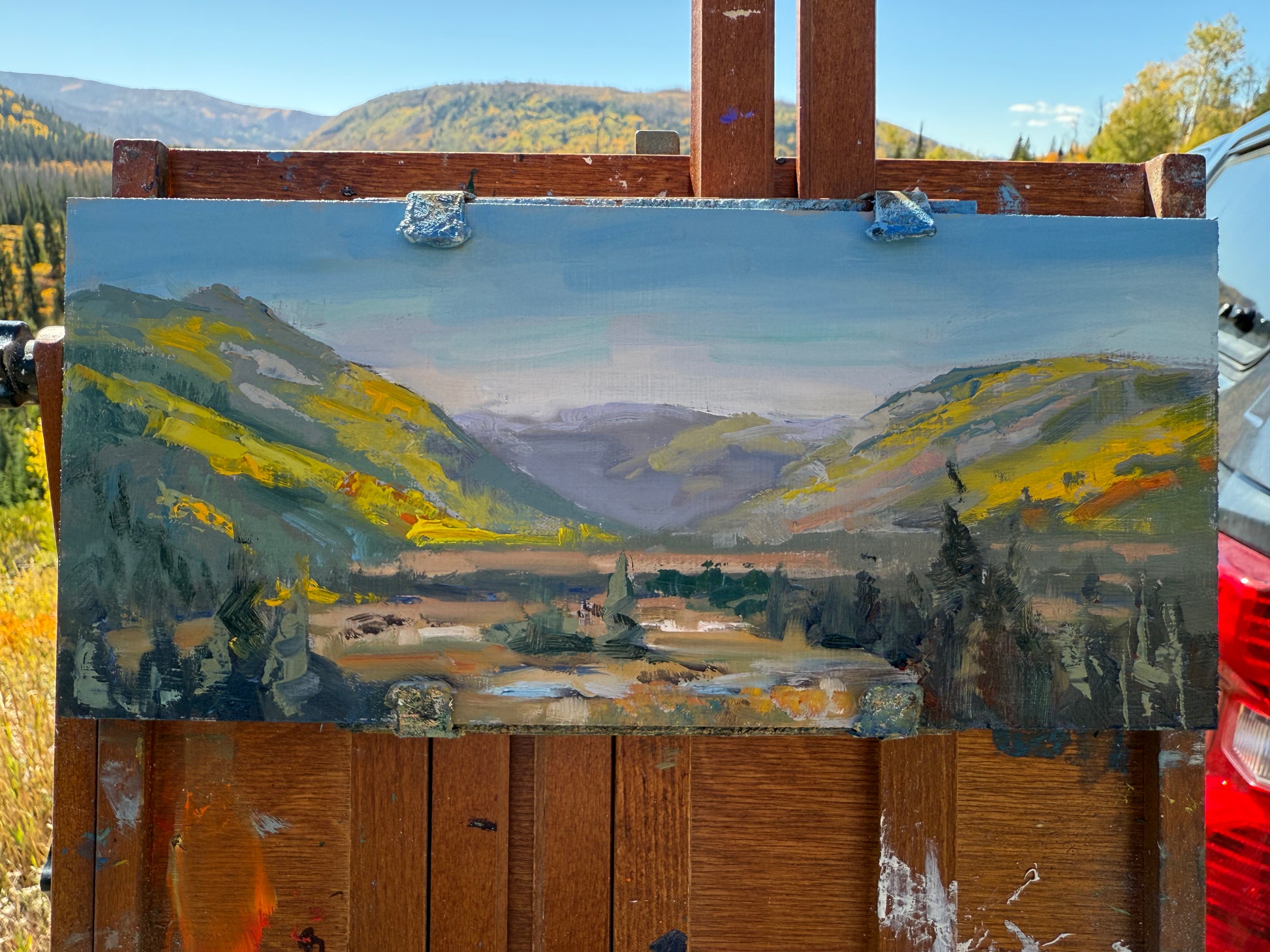 A Plein air painting measuring 9 x 11 inches. Painted in oil on hardboard. This painting was completed on September 24th 2025 in Northwest Colorado in the Zirkel National Forest outside the town of Clark.